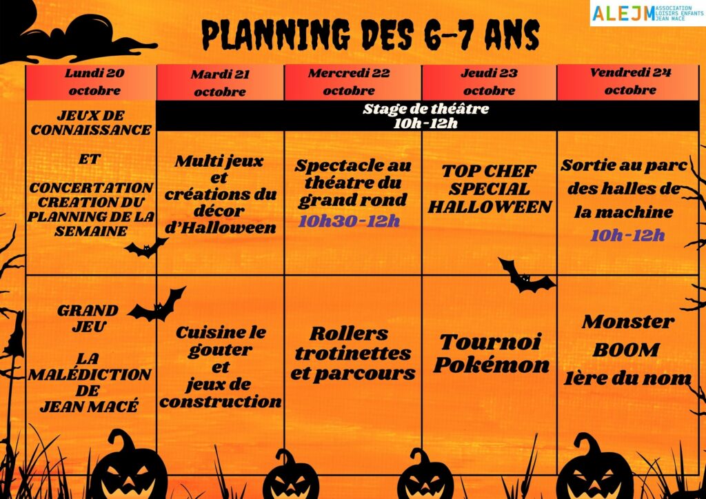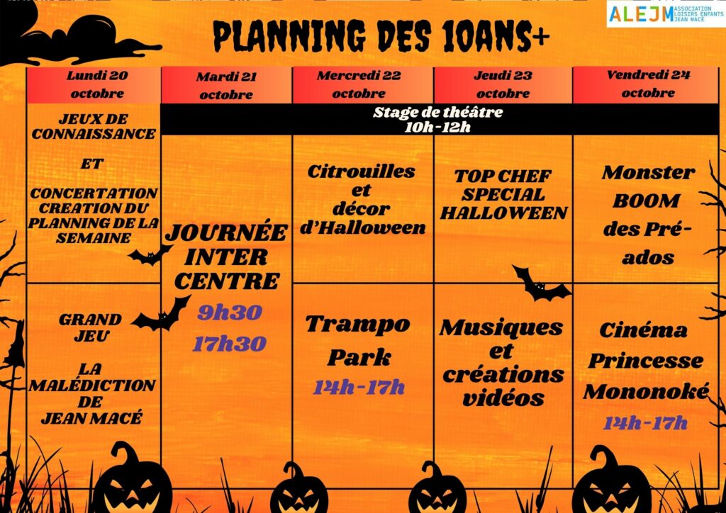 PLANNINGS DES VACANCES D’AUTOMNE