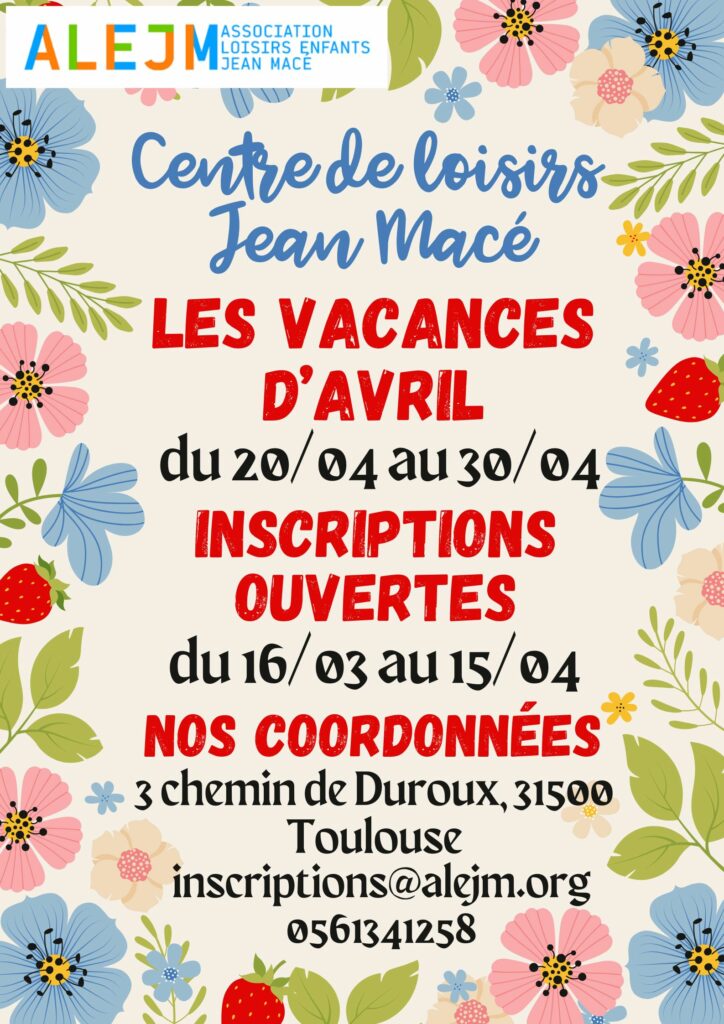 Inscriptions ouvertes pour les vacances d’avril !!!